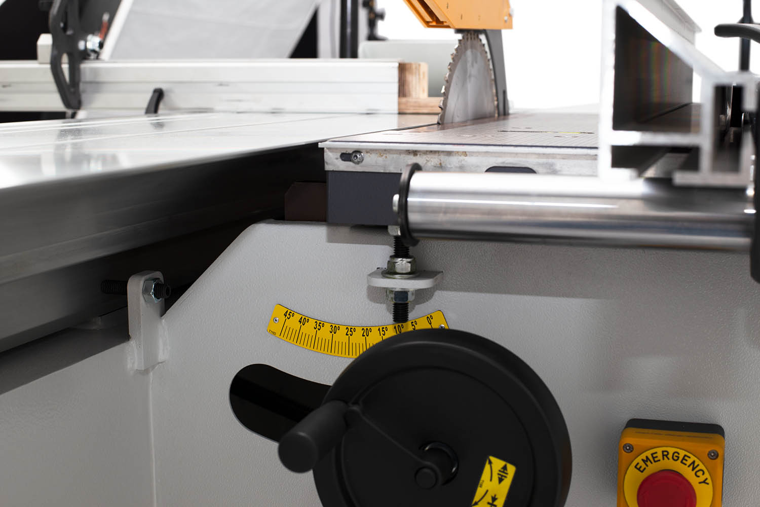 - Gradanzeige der Sägeblattneigung am Handrad