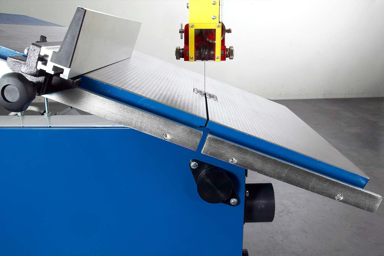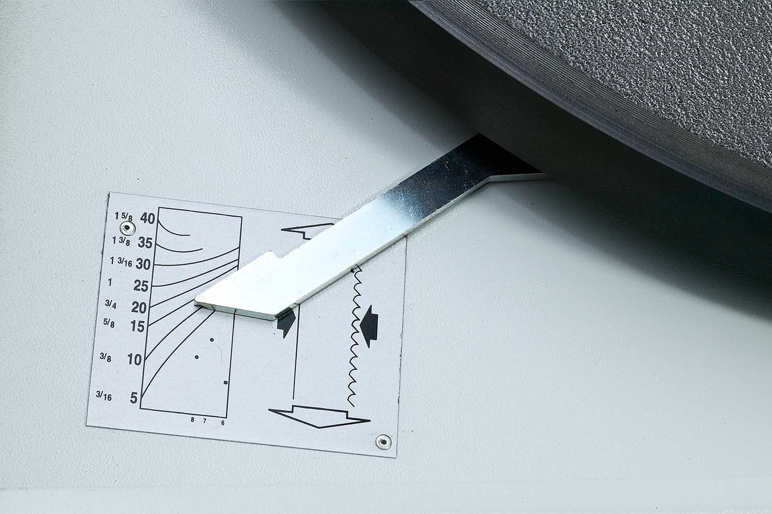 - Der Materialanschlag ist besonders stabil ausgeführt und mit einer praktischen Schnellspannvorrichtung ausgestattet.